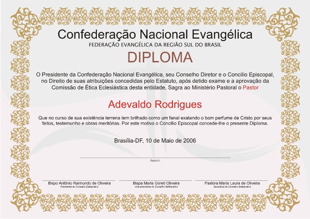 Diploma Pastoral(Reconhecimento da sua Unção)